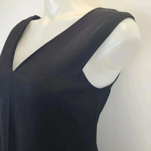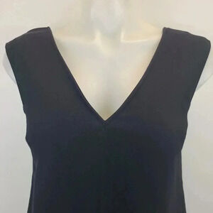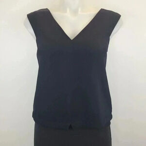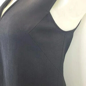 Rag & Bone Black Boxy Top Oversized V-neck Scuba Viscose Silk size XS. On trend boxy, oversized wide top. Shorter length. Sleeveless. V-neck. Open back. Seamed detailing at front and sides as pictured. Notched detail at bottom front. Contrasting fabric panel on back. Viscose blend with silk blend lining. Smooth scuba material. Fully lined. Made in USA. In excellent preowned condition. On trend crop style basic for casual or dressy wear.