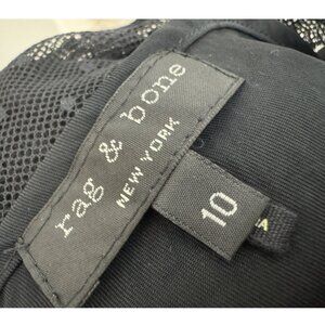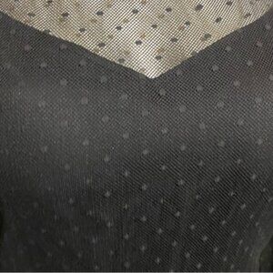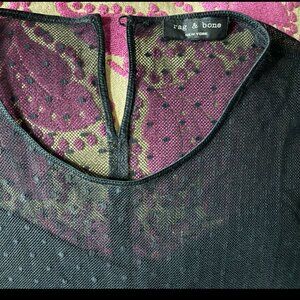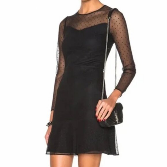 Really pretty and versatile Rag & Bone black dress. Swiss-dotted, sheer mesh on upper chest, décolletage, and sleeves.