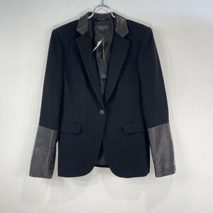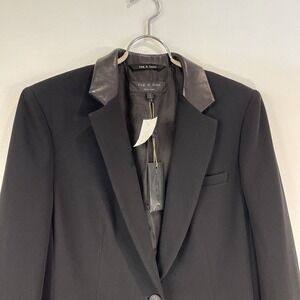 Rag & Bone | Black/Black Timeless Single Breasted Blazer with Leather Trim NWT 4