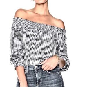 Rag & Bone Black/White Drew Smocked Off Shoulder Gingham Top Women’s XS