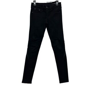 Elevate your style with these chic Rag & Bone black skinny jeans featuring sleek leather accent panels for an edgy yet sophisticated vibe. Crafted in the USA with exceptional attention to detail, these jeans are designed to flatter with a slim, elongating silhouette. Perfect for pairing with heels for a night out or boots for a cool, street-style look.