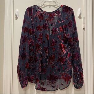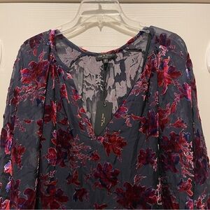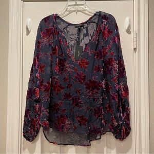 Rag & Bone Blouse Women's Small Purple Floral Velvet Burnout Top Whimsigoth Boho