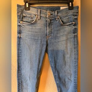 Stylish ankle cropped jeans. Classic blue denim. Perfect for casual wear.
