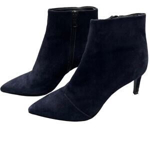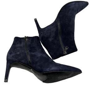 Rag & Bone Womens Size 37 US 7 Suede Leather 3" Stiletto Heeled Moto Ankle Boots Navy Blue Inside Zipper Pointed Toe Trendy Fall Chic