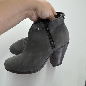 Rag & Bone Boots Womens 37.5 Grey Black Harrow Suede Block Heel Ankle Bootie