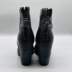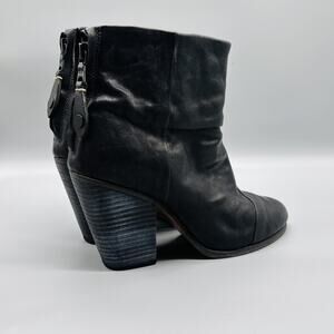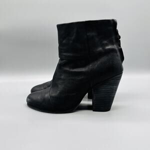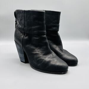 Rag & Bone Boots Womens 8.5 Black Leather Newbury Ankle Booties Block Heel Zip