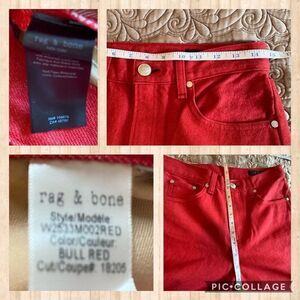 🔥 Rag & Bone Bull Red Ash Jeans NWT Size 26” High Rise Slim Fit designer denim
