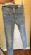 Excellent like new condition. Nice thick & stretchy comfortable material. Raw hem. Light wash with a distress coloring to them.