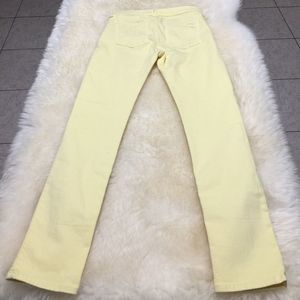Used once, not much signs of use. No Damage. Inseam: 26" Front Rise: 8" last pic reflects true color.stretchy. Skinny yellow jeans.