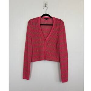Rag & Bone Carson Crochet Striped Pink Knit Button Front Preppy Cardigan Large