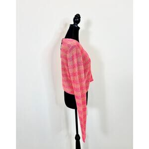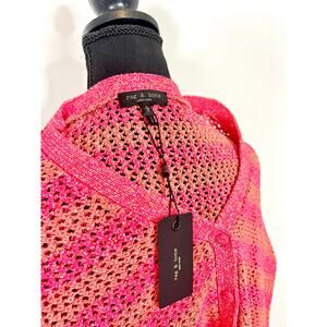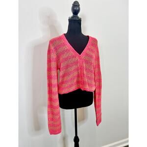 Rag & Bone Carson Cropped Crochet Cardigan Pink Multi Striped Large Button Front