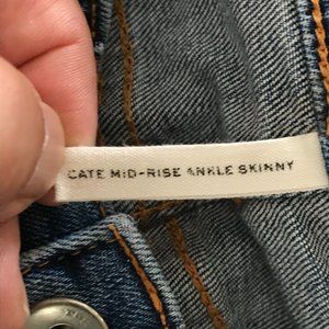 Rag & Bone Cate Mid Rise Ankle skinny Jeans Women size 24 Blue Distress Raw Hem 10440