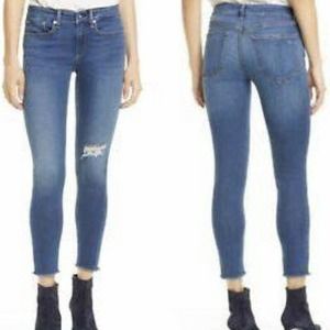 Rag & Bone Cate Mid-Rise Skinny Distressed Raw Hem Blue Jeans Size 30 $195