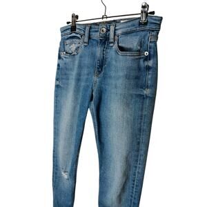 Rag & Bone Cate Mid-Rise Skinny Jeans Size 23 Distressed Blue Wash Ankle Raw Hem