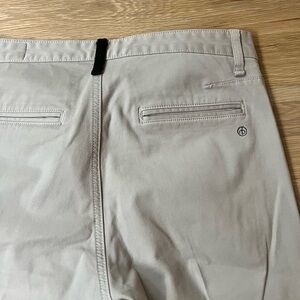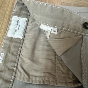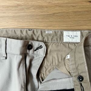 @kopec795 they are cotton with a little bit of stretch, really soft and comfy. They are rag and bone fit 2. Slightly slim fit but straight at angle so not like a skinny fit. But also not super baggy.