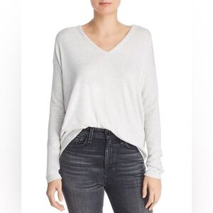 Rag & Bone Clara Earl Grey Torqued V-Neck Waffle Knit Long Sleeve Shirt Size XS