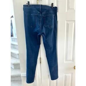 Very good condition, patch removed on back. Dark blue wash, stretch, skinny fit.