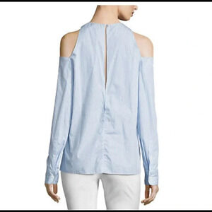 Rag & Bone Collingwood Cold Shoulder Blue and White Stripe Long Sleeve Blouse Small. Excellent pre-owned condition. Please ask any questions!
