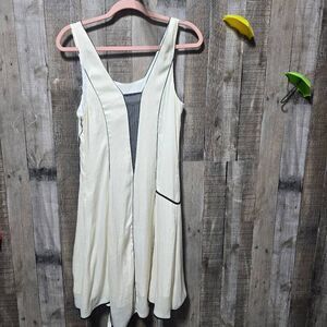Details: sleeveless, scoop neck, zip side, polyester lined, about knee length, flowy, very comfortable