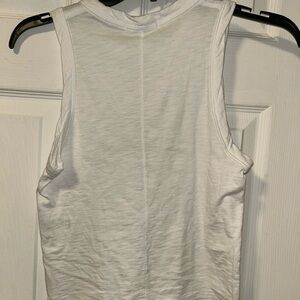 This cream muscle tee from Rag & Bone features a classic sleeveless design with a rounded neckline, crafted from a lightweight fabric for ultimate comfort. Its simple and versatile style makes it a perfect addition to any wardrobe, ideal for layering or wearing on its own.