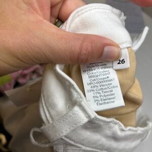 Cute stretchy cropped flare jeans with raw hem. Further description in pix. 🚩missing fly button. Manufacturer tags removed but discount store tags attached. Guessing a return due to the button. No other flaws.