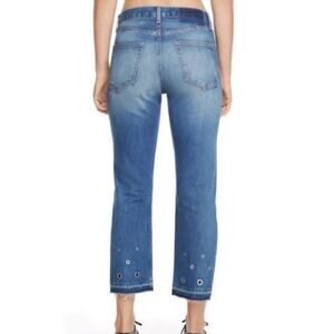 Rag & Bone Cropped Jeans Studded Grommet Straight Leg Eyelet Raw Hem Denim Sz 26