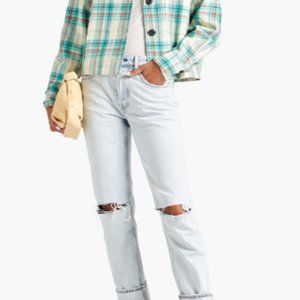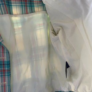 Purchased and worn once. No tags, but BRAND NEW. Cotton-blend in mint color (Style Name: Jessie checked)