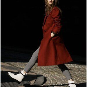 Rag & Bone Daine Long Single Breasted Wool Coat Deep Berry Red Office NWT