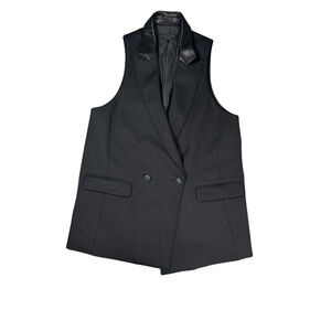 Rag & Bone Dant Leather Trimmed Vest Womens Size M Waistcoat Jacket Black Chic