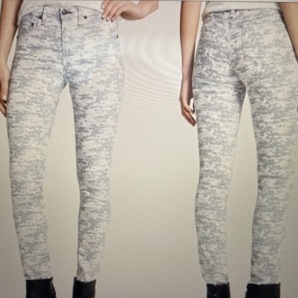 Impeccable like new Rag & Bone denim. Light gray print. The print is neutral, very pretty & fits with almost anything! Flawless, soft, ample stretch. Looks fab all year! True to size 28. All measurements given in pics. Just as good with flats & a T in summer as they are in winter with boots & sweater. Especially nice with a white, black or colorful top. Flawless & like new!