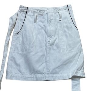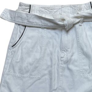 Rag & Bone Denim High Waisted White Denim Belted Mini Skirt With Contrast Piping