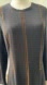 Striking designer dress in deep black with bold bronze stitching that adds instant sophistication. Long sleeves and sleek silhouette. Perfect for any occasion.