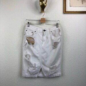 Rag & Bone Distressed Denim Skirt Shred White Ripp