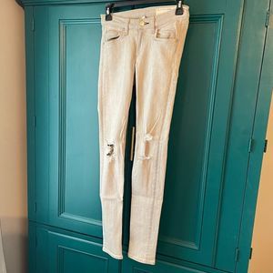 Perfect for the season gray jeans by Rag & Bone in great distressed skinny jeans...approx measurements waist 26.5 rise 7.5 inseam 30.5” - see my closet for another pair of 24 rag & Bone, frame, 7 for all mankind jeans - perfect bundle!