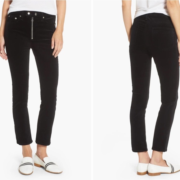 Rag & Bone Dojo High Waist Velvet Ankle Skinny Pants in Black in Size 24