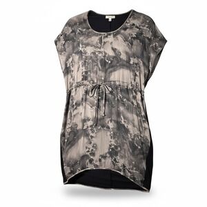 This Rag & Bone New York silk tunic dress is the perfect mix of edgy and versatile. Made from silk and cotton it features a stunning gray and black marble abstract print that feels both artistic and modern. Designed with a scoop neckline, cap sleeves, and an adjustable drawstring waist, it creates a flattering silhouette that can be cinched or worn relaxed. The high-low hemline adds movement and interest, while the back panel in solid black provides sleek contrast.