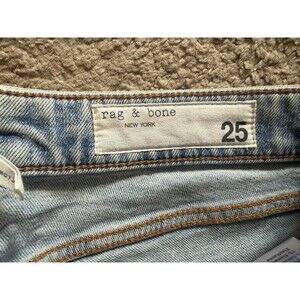 These denim jeans feature a slouchy, distressed look with a light fabric wash, giving them a trendy and relaxed vibe. The addition of spandex in the fabric blend provides stretch and comfort, making these jeans ideal for everyday wear. With a zip closure and pockets for added convenience, these rag & bone jeans are a versatile addition to any woman's wardrobe.
