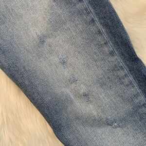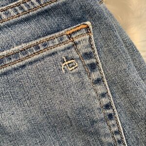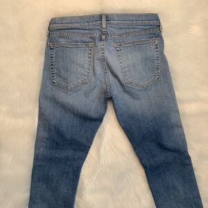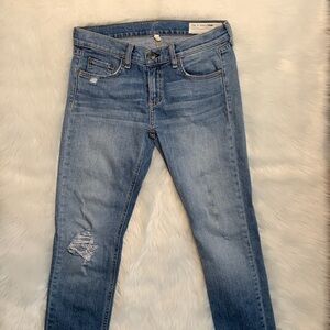 Rag & Bone Dre skinny jeans. Medium wash denim in cotton/polyurethane blend. Intentional distressing and rips. Frayed hem. Five pocket styling. Womens size 26. Great used condition.