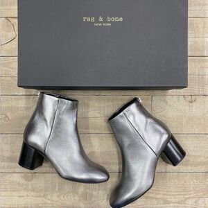 Rag & Bone Drea Metallic Leather Boots In Gunmetal