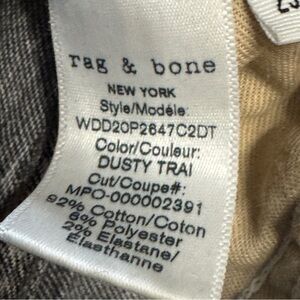 Rag & Bone Dusty Trail Jeans Size 25 High Rise Gray Slim Straight