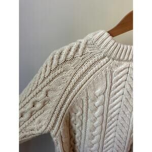 Classic Rag & Bone fisherman sweater in a warm ivory wool blend. Crafted in a traditional cable-knit pattern with a modern, slightly boxy fit, this piece combines timeless texture with the brand’s understated New York edge. Features ribbed cuffs, hem, and neckline for a clean finish.