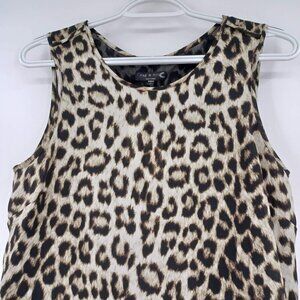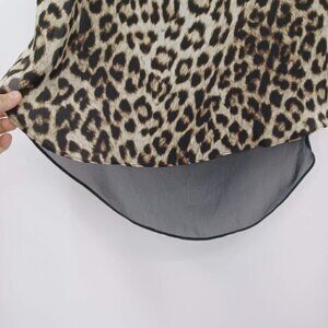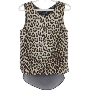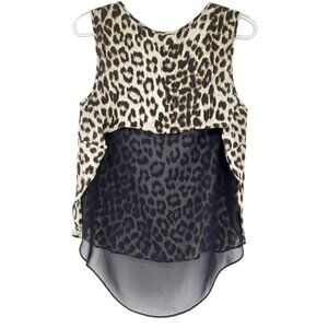 Rag & Bone Fleet Top Leopard Print Brown & Black Round Neck Sleeveless Mesh Back Chiffon High Low Shirt Tail Hem Lightweight Breathable Women's