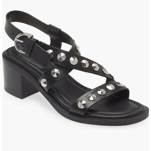 Step into bold sophistication with these Rag & Bone “Geo” Block Heels, crafted from smooth calfskin and detailed with oversized silver studs. With a chic crisscross design and a comfortable block heel, these are a standout sandal for the modern minimalist.