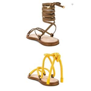 Rag & Bone Gladiator Sandal SIZE 6.5 Tan Festival Gold Ankle Wrap Laces $375 NEW
