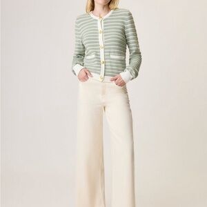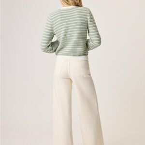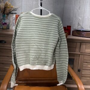 Chic green and white knit top by Rag & Bone. Ideal for layering. Few spots pointed out