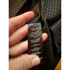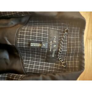 Rag & Bone Grey plaid Leather Collar Blazer Jacket 2 (missing Button)