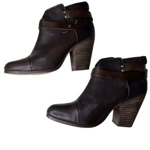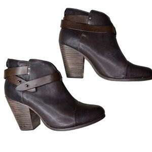 Features Pushpin hardware modernizes a svelte cap-toe bootie girded with wraparound straps and set on a sculptural block heel. - Round toe - Solid vamp - Leather construction -