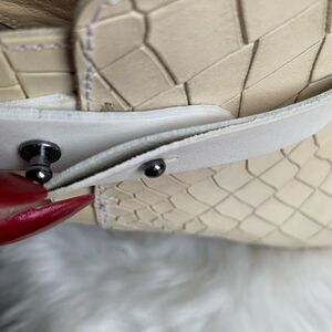 Beige/tan/cream alligator leather ankle boot white adjustable strap closure difference in the leather color, leather strap is damaged, button missing from back) smoke/pet free home