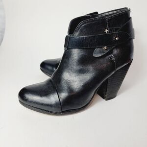 Rag & Bone Harrow Black Leather Moto Inspired Boot Size 38.5