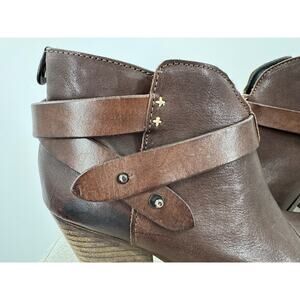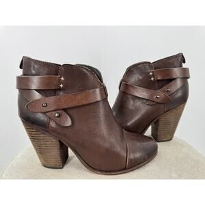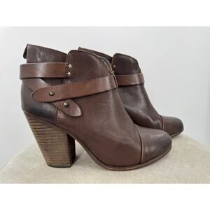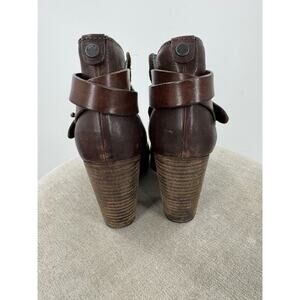 Rag & Bone Harrow Brown Leather Ankle Boots Heeled Heels 3 Strap Buckle 38.5 8.5